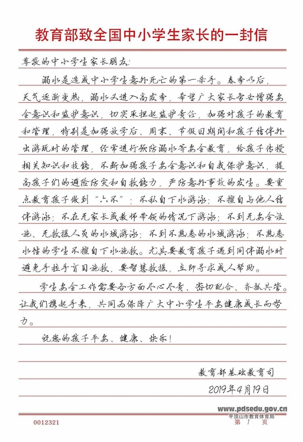 预防溺水!教育部致全国中小学生家长的一封信,请老师务必转给家长!