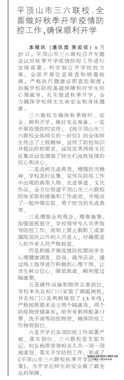《教育时报》:米兰手机版app下载安装三六联校:全面做好秋季开学疫情防控工作,确保顺利开学