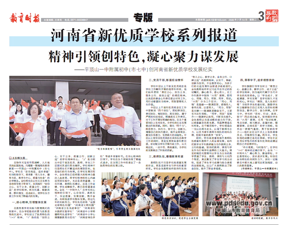 《教育时报》平顶山一中附属初中(市七中)创河南省新优质学校发展纪实