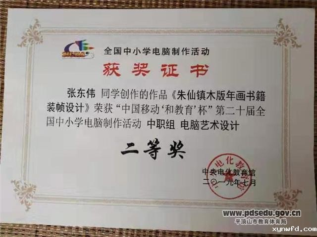 [图]市工业学校学生张东伟在2019年全国中小学电脑制作竞赛中首创佳绩