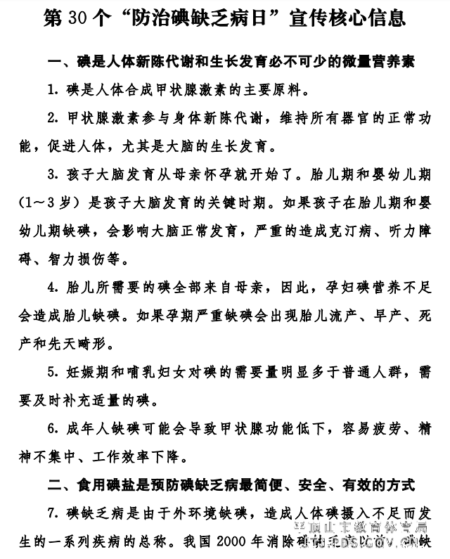 2023年5月15日第30个“防治碘缺乏病日”宣传核心信息