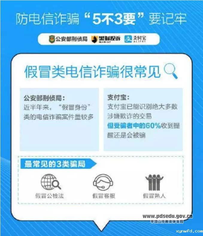 谨防假冒公检法、假冒客服和假冒熟人类电信网络诈骗 牢记“5不3要”