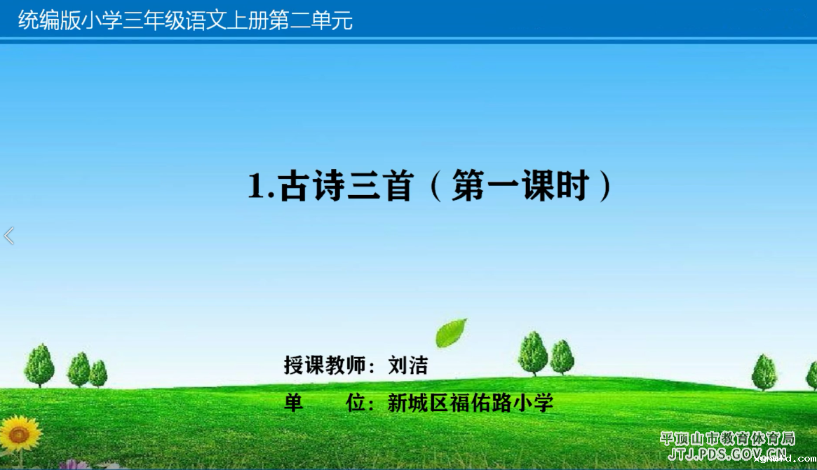 【小学语文三年级】第二单元 第一课《古诗三首》第一课时
