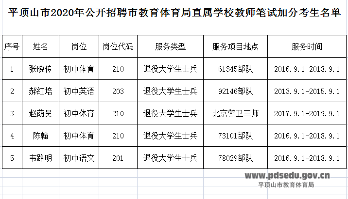 附件:米兰手机版app下载安装2020年公开招聘市教育体育局直属学校教师笔试加分考生名单