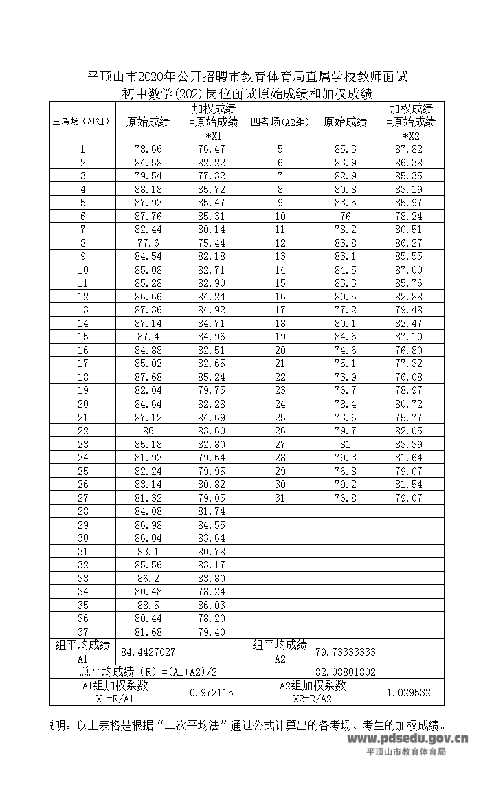 2.米兰手机版app下载安装2020年公开招聘市教育局直属学校教师面试初中数学(202)岗位原始成绩和加权面试成绩