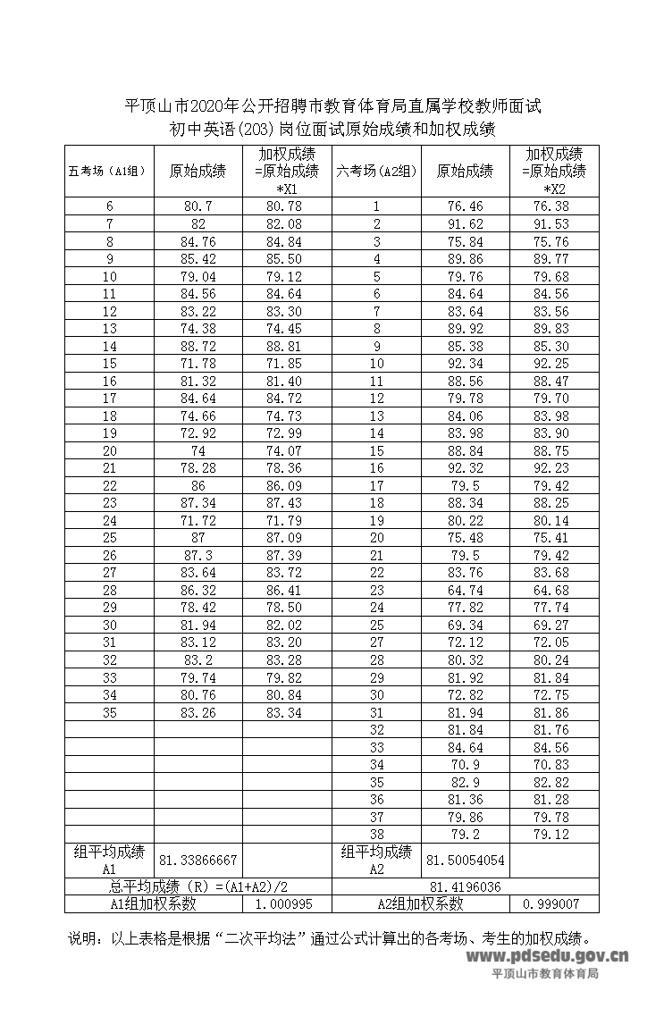 3.米兰手机版app下载安装2020年公开招聘市教育局直属学校教师面试初中英语(203)岗位原始成绩和加权面试成绩