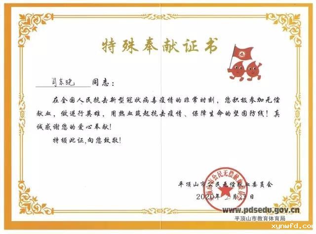 2月28日下午,念及疫情期间严峻的采血形势和紧张的血液库存,司东晓趁着工作的间隙,戴着口罩来到米兰手机版app下载安装区平声影剧院一旁的献血屋,伸出手臂,做了一名“逆行献血者”和“最美蒙面侠”,用一腔热血筑起抗击疫情、保障生命的坚固防线。市一中校长胡彦军了解情况后说,“司东晓老师能在关键时刻做出这样的举动,一点也不奇怪,他平时就是一名工作积极敬业、认真负责,对学生充满爱心的优秀教师,连续两年被市教体局评为优秀共产党员。”
