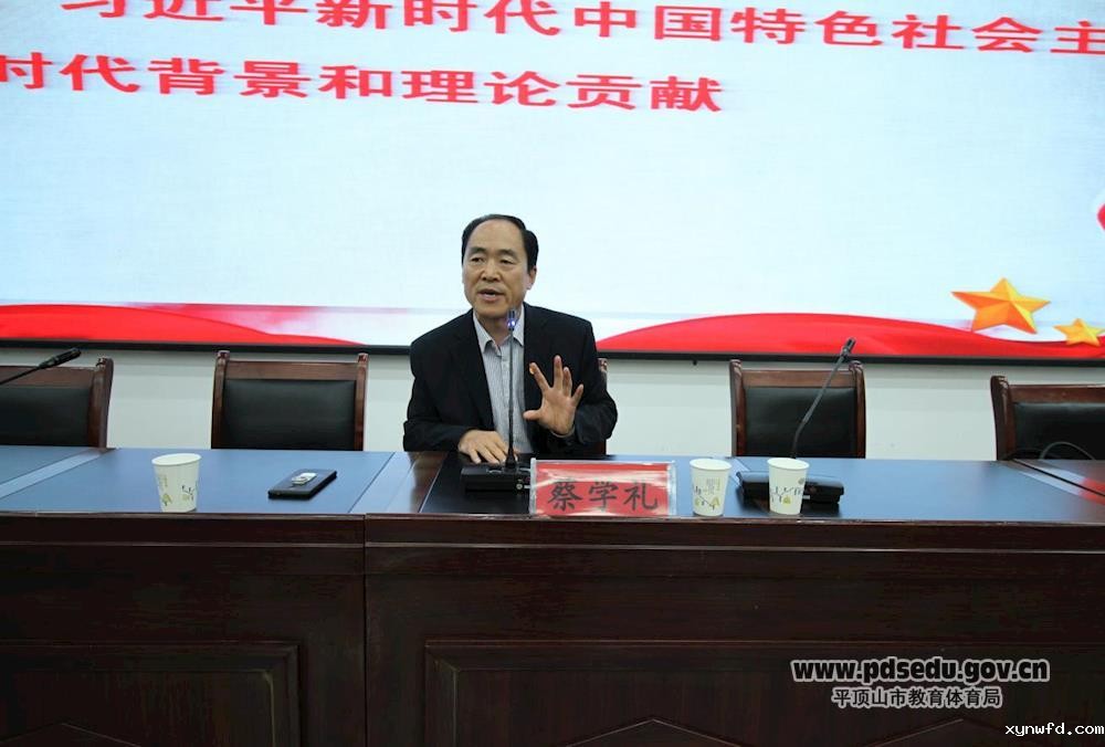 接着,蔡学礼以《新思想引领新时代,新战略铸就新辉煌》为题,从习近平新时代中国特色社会主义思想时代背景和理论贡献、习近平新时代中国特色社会主义思想的丰富内涵和习近平新时代中国特色社会主义思想领航新征程等三个方面深入讲解。整场报告主题鲜明,内容丰富,思想深刻,条理清楚,赢得了在场观众阵阵掌声。