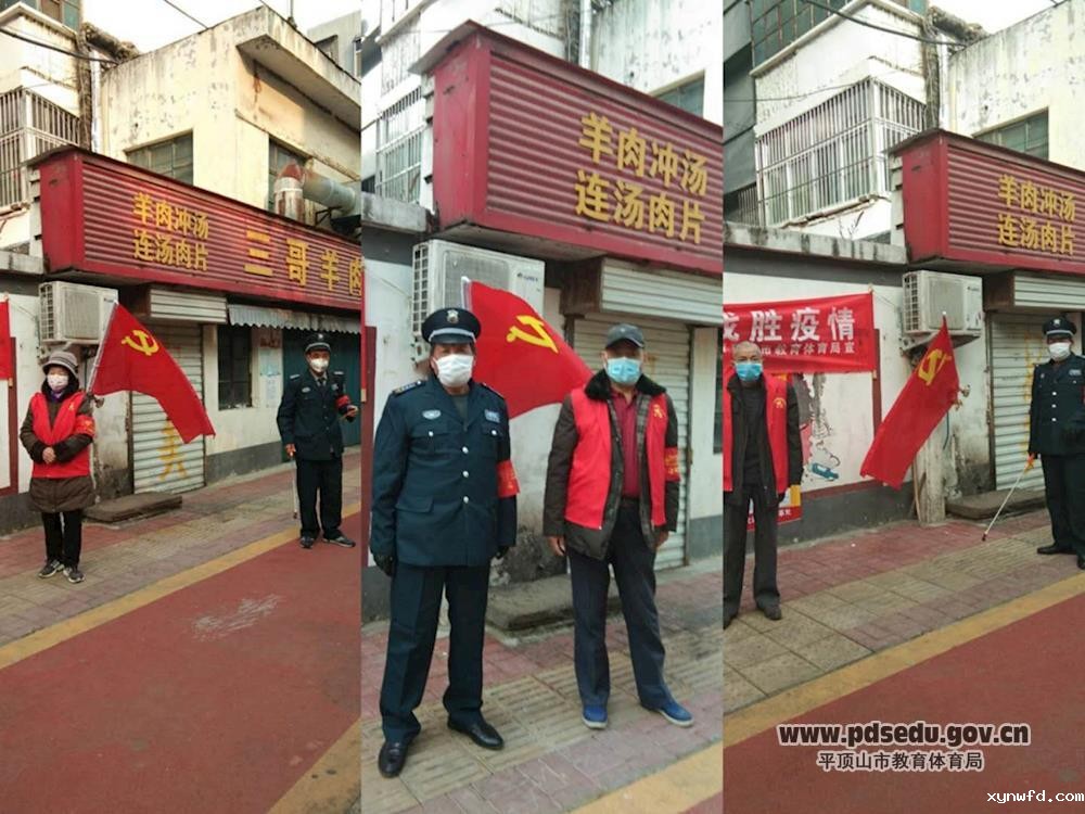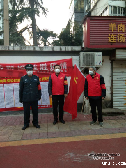 退休老党员魏新月、史宪法、孙松发、杜秀云、王书海等同志主动报名带头参加志愿服务,连续在公园北街老干部家属区防控值班巡逻15天,让党旗飘扬在社区,让党员形象闪耀在社区。他们不惧风险,不辞辛劳,热心向广大住户宣传防疫知识,为防控疫情奉献力量,受到一致好评。