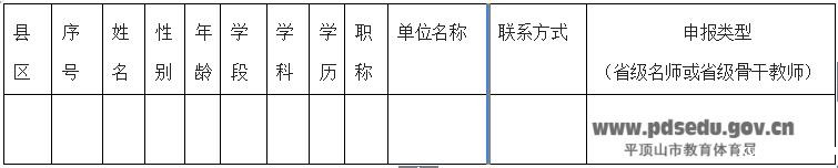 1.各单位按文件要求,把符合条件申报人员的信息按以下表格填写发送至市教师教育科邮箱:pdsjsjyk@126.com;