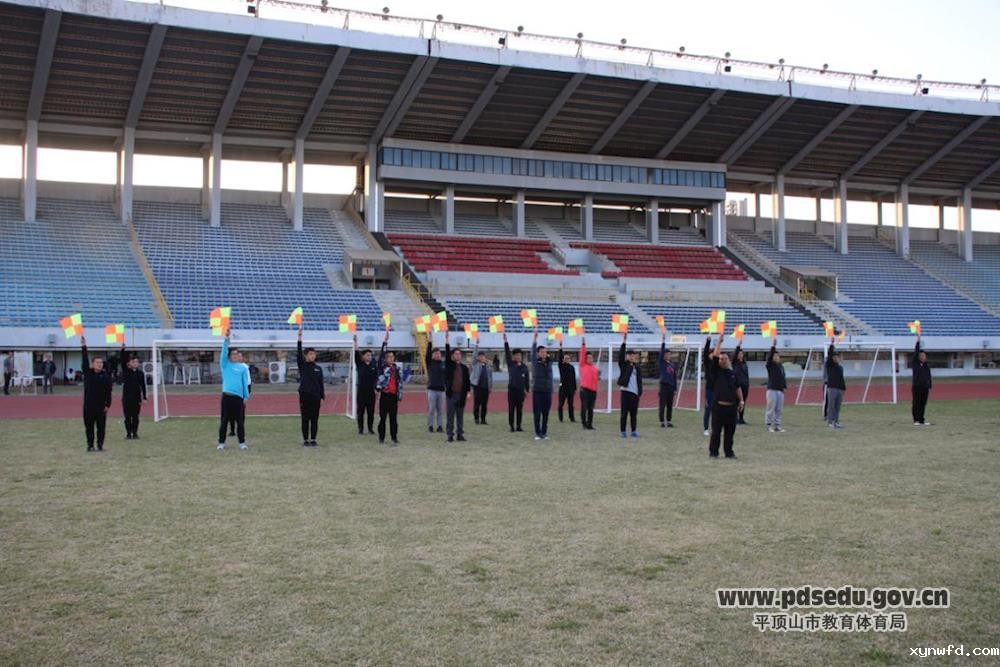在裁判员培训中我们邀请到了河南省商业高等专科学校、国家级裁判,河南省省长杯校园足球赛的裁判长李宝宁教授和省校足办讲师团成员,平顶山学院体育学院副院长孔祥两位教授为大家讲解了校园足球比赛的竞赛规则、裁判员职业道德、裁判法及编排、各类判罚技巧及旗语等实操的运用。