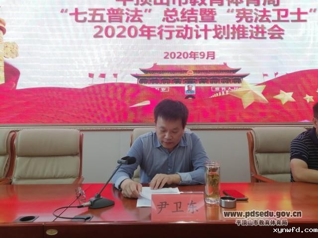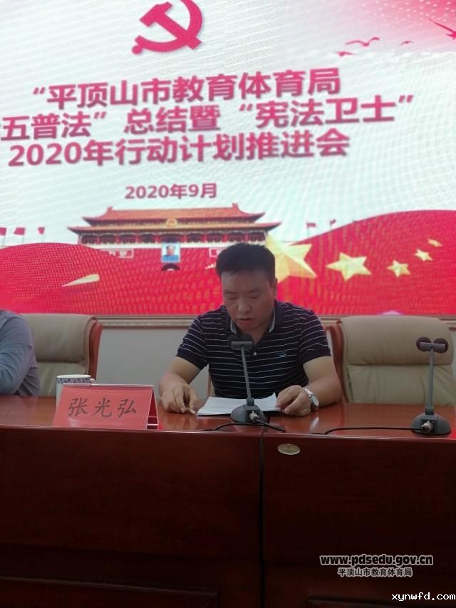 会议共3项议程,首先市教体局政策法规科对全市教体系统“七五普法”工作进行总结;其次市教体局副局长尹卫东同志对今年“宪法卫士”活动进行部署安排;最后市教体局对“宪法卫士”行动计划操作流程进行培训。