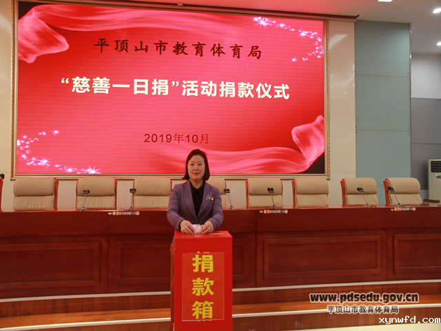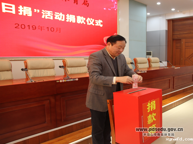 | 繁体 | 网站已支持ipv6为大力弘扬中华民族扶危济困、乐善好施的传统美德,充分发挥慈善事业在脱贫攻坚、改善民生、文明创建等方面的积极作用,2019年10月30日,市教育体育局在二楼会议厅举行了“慈善一日捐”捐款活动。教体局班子成员、机关各科室及二级机构全体人员参加了活动。