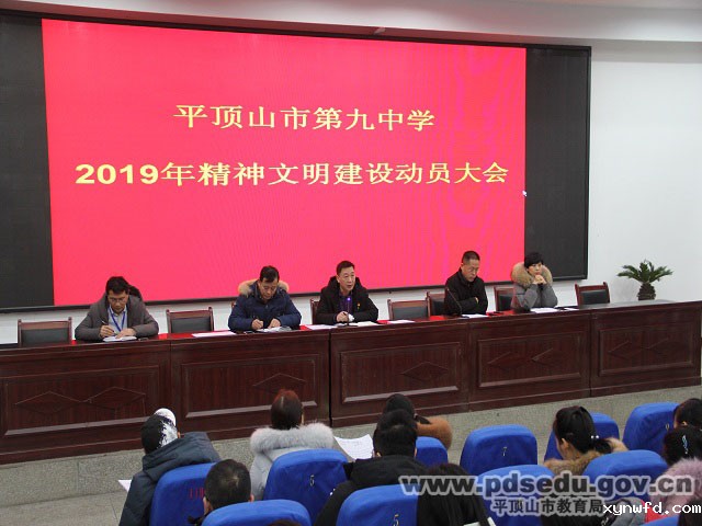2019年1月17日下午,新年伊始,市九中在阶梯教室召开全体教职工大会,暨2019年精神文明建设动员大会,校领导和老师们一道学习和领会文明创建精神要义,努力做好本年度精神文明建设工作。