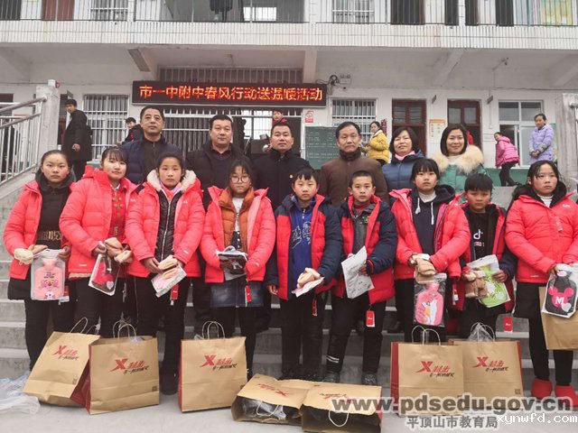 带着全体教职工的心意,迎着冬日的暖阳,2019年1月18日上午,校长王东辉、副校长张留庆等一行5人,先后来到鲁山县赵村一小和鲁山县35中,将平顶山一中附属初中全体教职工的爱心送给贫困学生。