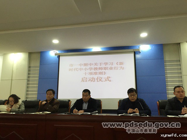 近日,教育部印发了《新时代中小学教师职业行为十项准则》,明确了新时代教师职业规范,划定基本底线,深化师德师风建设。教育体育局也及时下发了相关文件。1月18日,根据文件要求,市一中附中在该校四楼大会议室举行了关于学习《新时代中小学教师职业行为十项准则》暨寒假治理有偿补课专项治理活动启动仪式。会议由该校副校长李学功主持,该校全体教师出席会议。