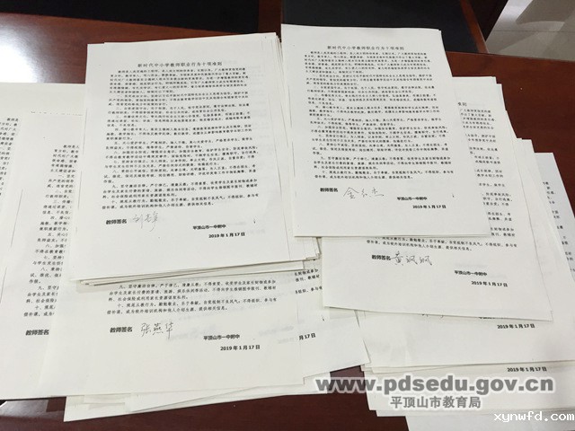 为使准则更好地落地执行、取得实效,该校还按教研组分别签订了《新时代中小学教师职业行为十项准则》和《市一中附中教师寒假拒绝有偿补课承诺书》,明确了师德师风建设,并做出杜绝寒假有偿补课的承诺。要求老师们假期认真学习十项准则,做好读书笔记,开学上交读书笔记。