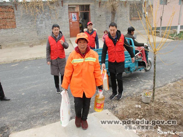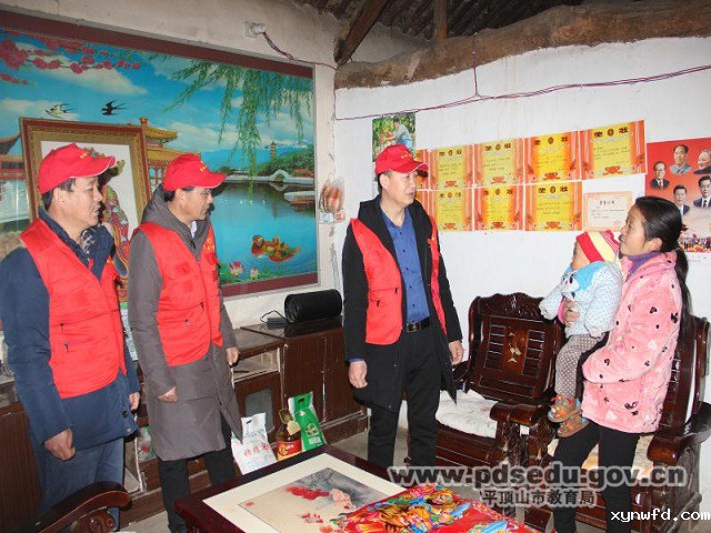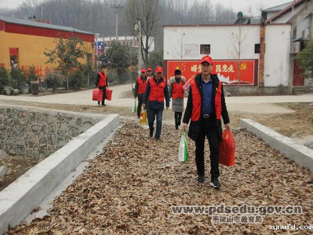 1月25日上午,市九中校长耿保峰、副校长宋新强、石建国、王文慧和李慧静等一行七人,冒着凛冽的寒风,到鲁山四棵树乡黄沟村和叶县龙泉乡北大营村看望帮扶的贫困户,给他们送去冬日的温暖和春节的问候。