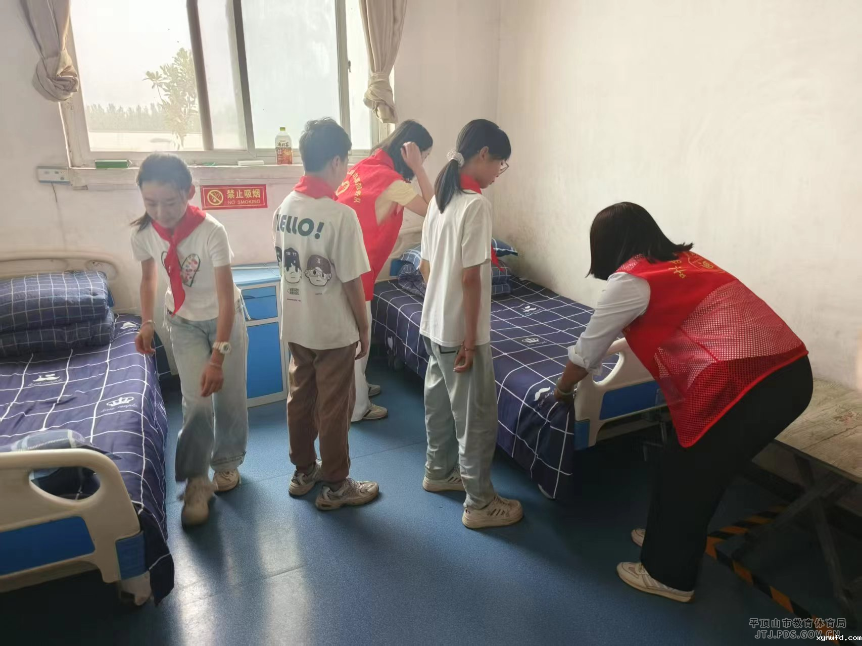 大家为老人们捶背、捏腿,用稚嫩却真诚的话语关心着老人们的身体状况,让平日里安静的敬老院瞬间充满了欢声笑语。还有的队员为老人整理床铺,打扫卫生,让老人们居住舒心。