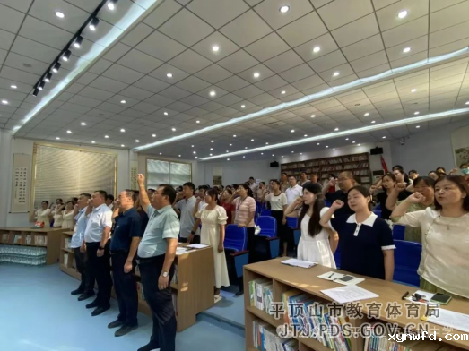 我宣誓:“忠诚党的教育事业,贯彻国家教育方针……淡泊名利,克己修身……”9月9日下午,市育才中学在阶梯教室举行2024年师德师风宣传月活动启动仪式。校党总支书记、校长李学功,副校长高福恒,副校长茹建峰,校长助理孙亚磊及全体教师参加启动仪式。