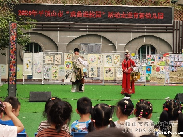 锣鼓一敲,幕布一开,端着婀娜身段,戏曲演员们身着戏服粉墨登场。《二胡演奏》《陈三两》《王华买爹》《风雪配》《寇准背靴》……经典选段一曲又一曲。演员们扎实的戏曲功底、娴熟高超的表演技巧,一招一式、一颦一笑都深深吸引了孩子们的眼球,将孩子们带入戏曲展演和交流的情境之中,紧扣住了孩子们的心弦,大家都不由自主的连连拍手称赞,为我们中华戏曲文化的博大精深而骄傲自豪。
