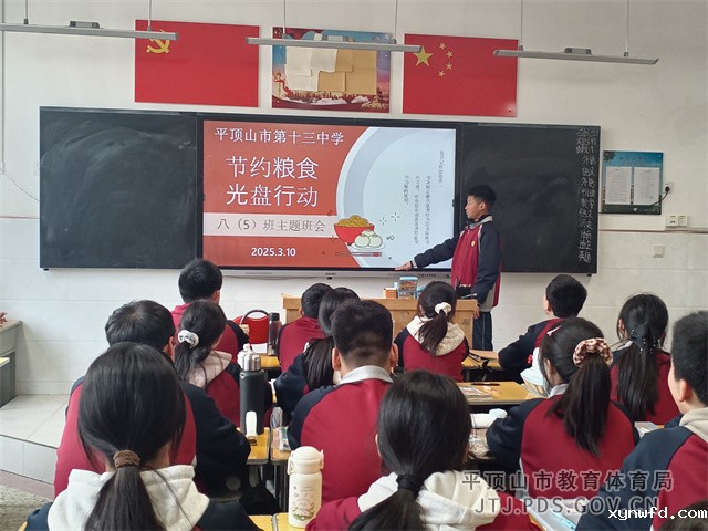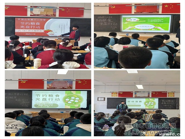 下午的班会课,各班开展了“节约粮食 光盘行动”的主题班会。主题班会课上,各班班主任讲解了粮食的来源、制作过程等,强调每一粒粮食的不易。针对学生在学校食堂浪费现象,向学生宣传节约粮食的重要性,强调养成珍惜粮食的好习惯,并将这种习惯带到家庭和社会中去。