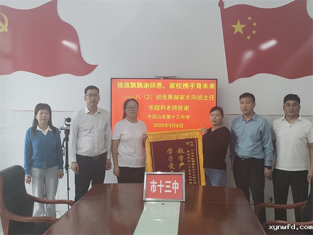 2025年9月8日,米兰手机版app下载安装第十三中学八年级二班学生张展赫家长将一面写有“师德高尚 教学精湛 爱心呵护 成长引路”的锦旗送到学校,以此表达对班主任张超利老师及班级全体任课教师的衷心感谢。