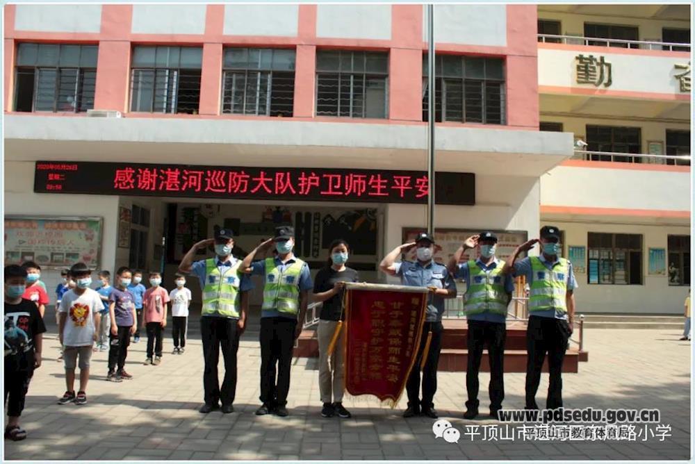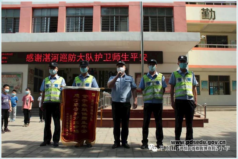 巡防队员日复一日的辛苦付出感动了全校师生。校长李庆敏为湛河区巡防大队送上代表学校1500余名师生敬意和感谢的锦旗。