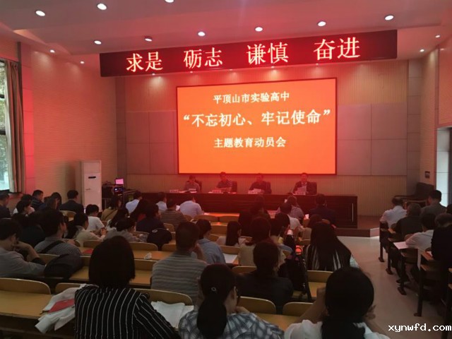 9月20日下午,市实验高中召开“不忘初心、牢记使命”主题教育动员会。市教体局第四巡回指导组到我校指导工作,学校全体党员参加会议。会议由党总支书记鲁文彬同志主持。