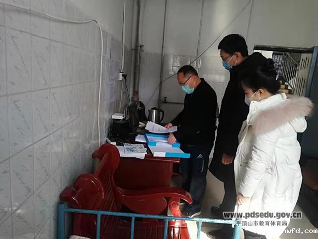 2月1日市教体局机关党委专职副书记陈成功同志到局属单位检查疫情防控和假期值班情况。