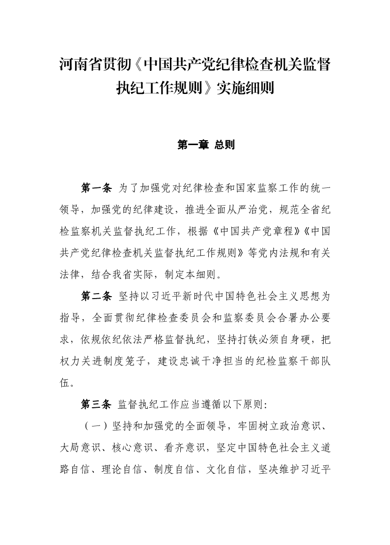 河南省贯彻《中国共产党纪律检查机关监督执纪工作规则》实施细则