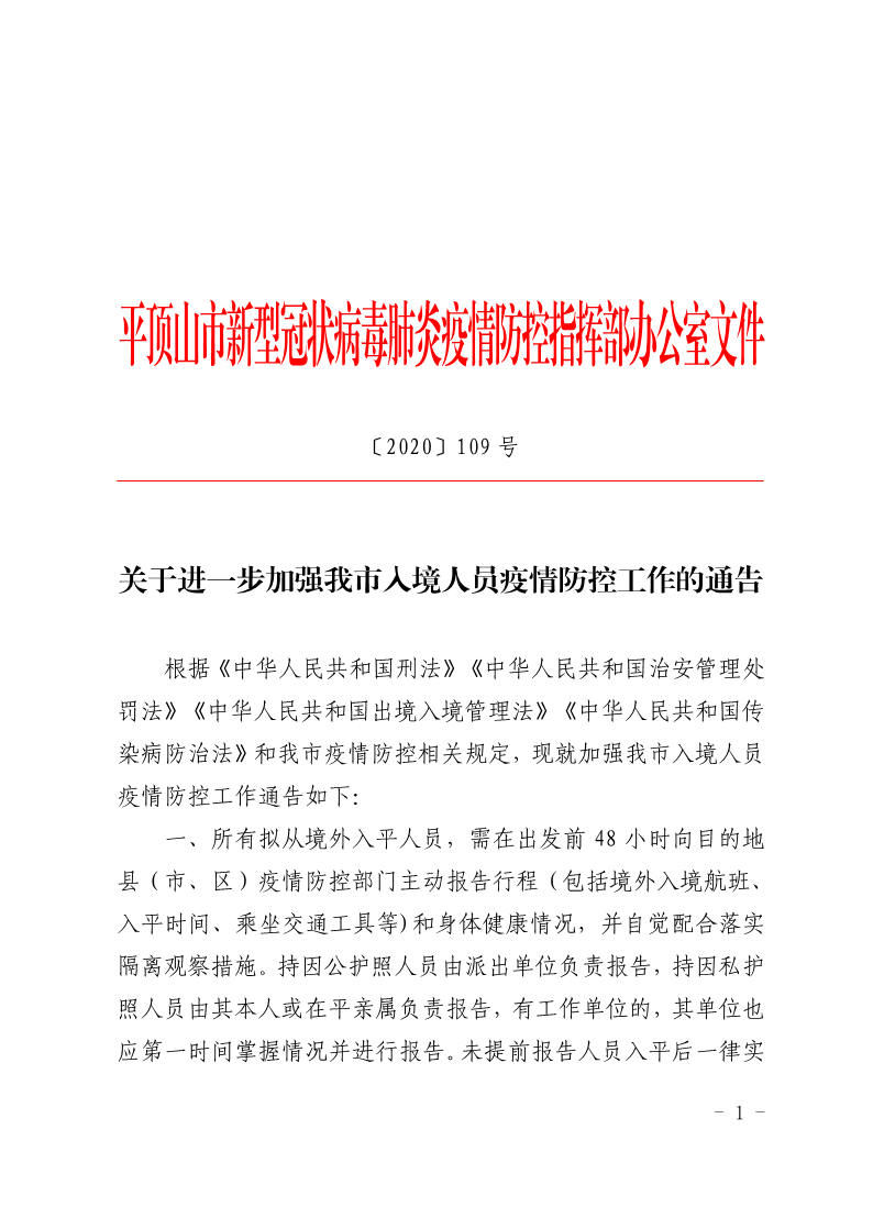 关于进一步加强我市入境人员疫情防控工作的通告