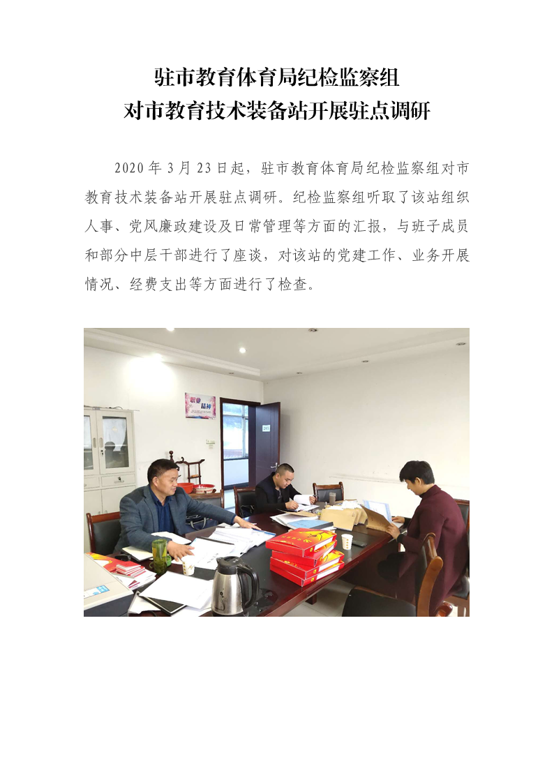 驻市教育体育局纪检监察组对市教育技术装备站开展驻点调研