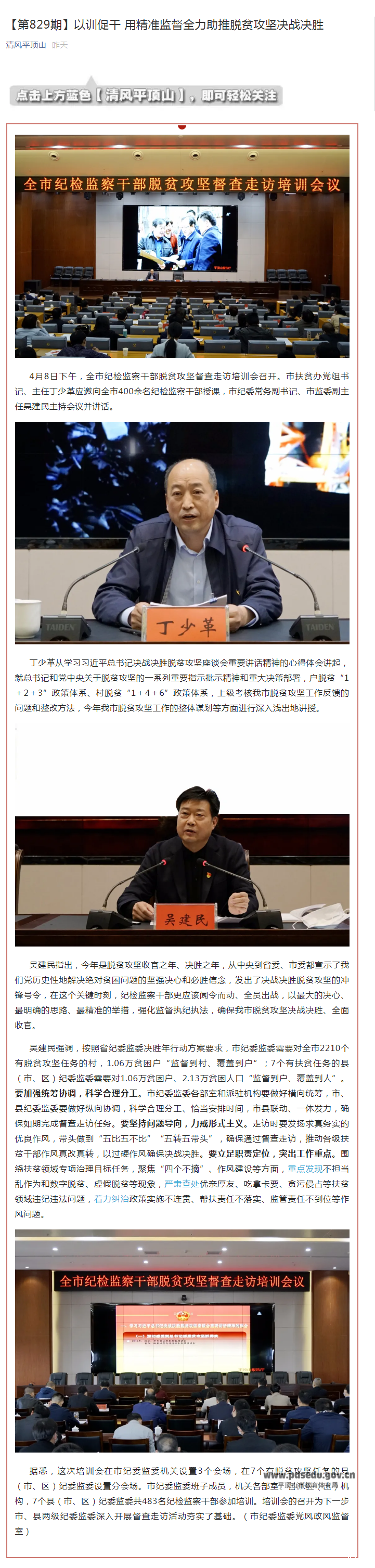 市纪委监委:全市纪检监察干部脱贫攻坚督查走访培训会