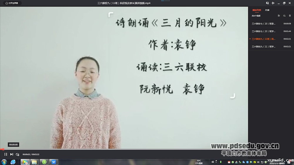 图3:袁铮老师和女儿一起创作并朗诵诗歌《三月的阳光》