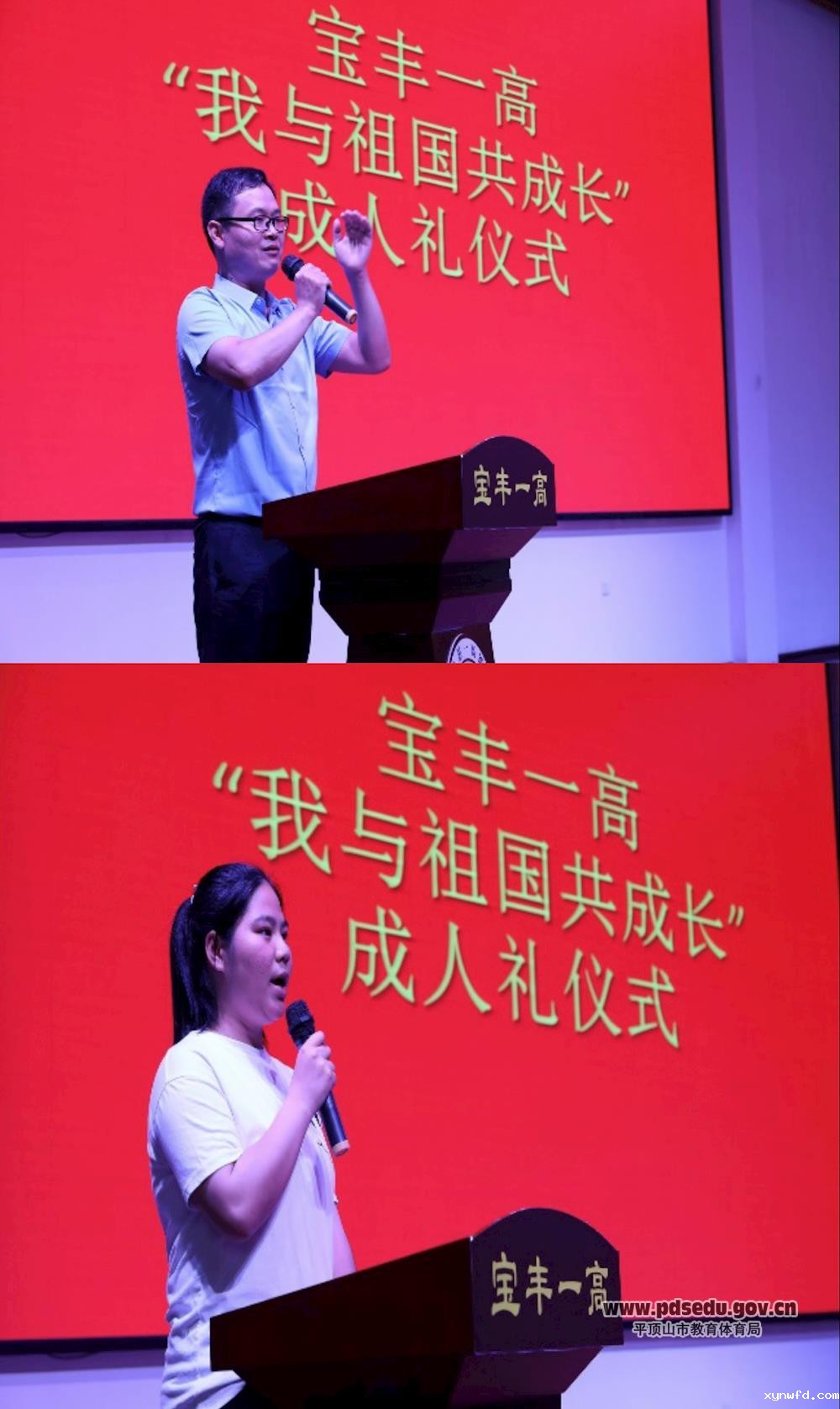 激情五月,生机盎然,一批高三学子即将迈入十八岁的成人行列。按照教体局活动安排,5月17日下午,宝丰一高在报告厅举行“与祖国共成长”成人仪式。校党委书记李红燕、副校长罗晗、副校长张国要和高三年级学生、班主任参加活动。