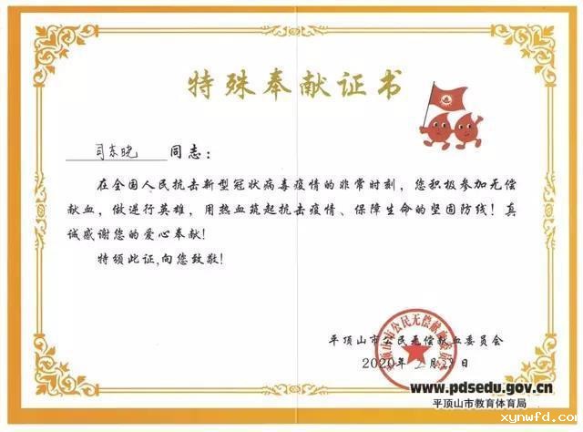 2月28日下午,念及疫情期间严峻的采血形势和紧张的血液库存,司东晓趁着工作的间隙,戴着口罩来到米兰手机版app下载安装区平声影剧院一旁的献血屋,伸出手臂,做了一名“逆行献血者”和“最美蒙面侠”,用一腔热血筑起抗击疫情、保障生命的坚固防线。市一中校长胡彦军了解情况后说,“司东晓老师能在关键时刻做出这样的举动,一点也不奇怪,他平时就是一名工作积极敬业、认真负责,对学生充满爱心的优秀教师,连续两年被市教体局评为优秀共产党员。”